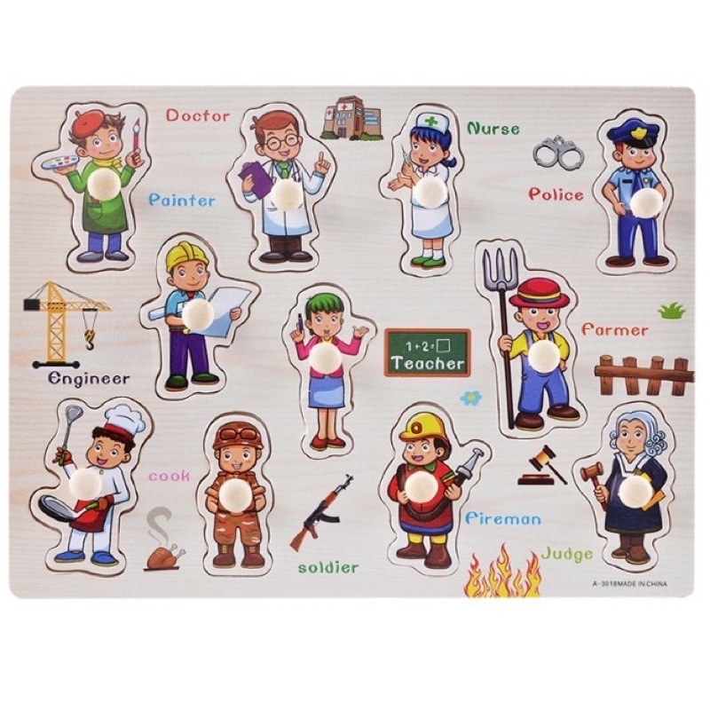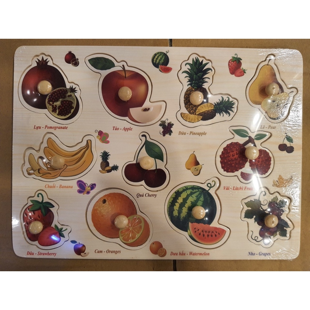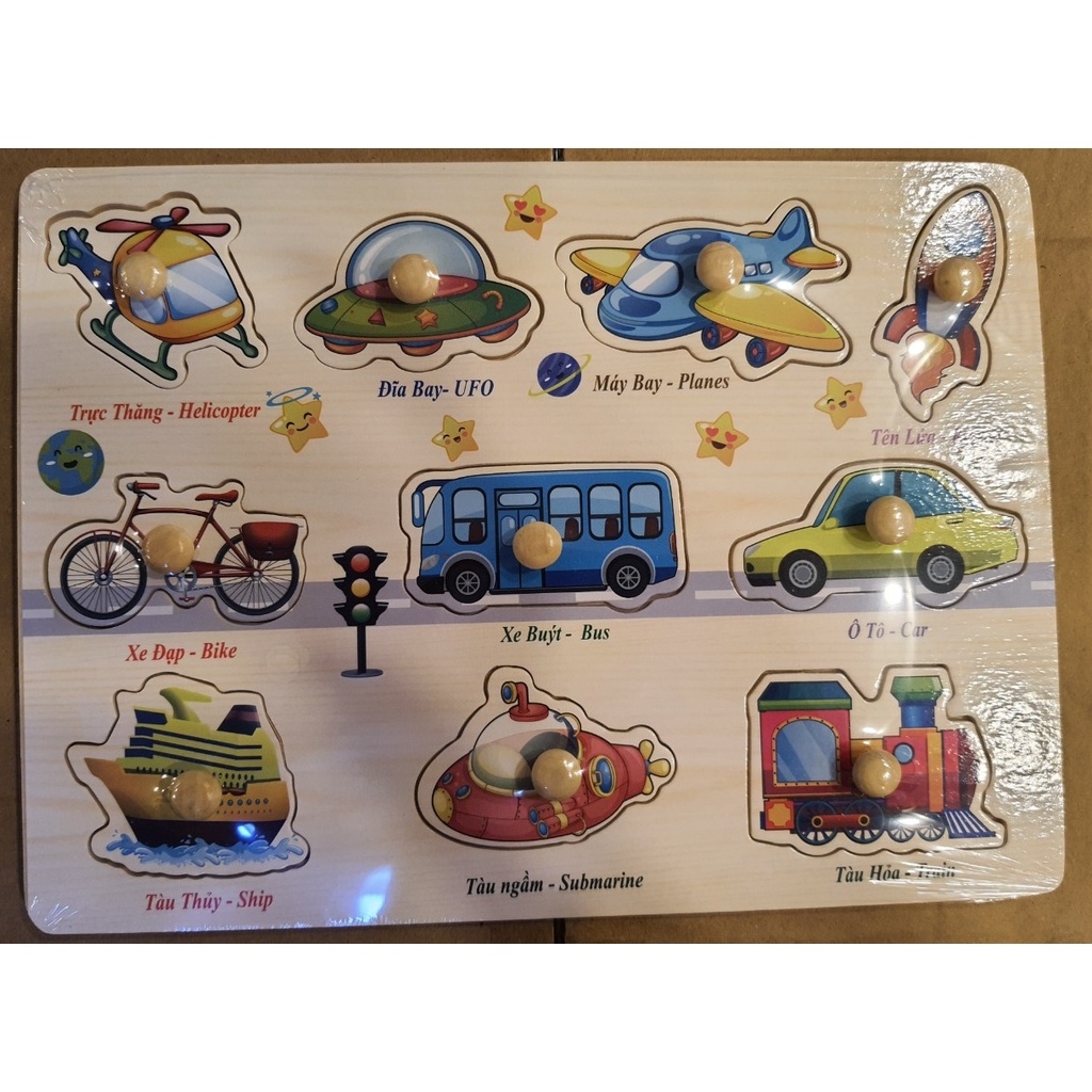 + Đồ chơi Bảng ghép hình có núm cầm được làm từ chất liệu gỗ an toàn với các chi tiết được xử lý nhẵn mịn, an toàn khi sử dụng. Nhiệm vụ của bé là đặt các miếng ghép vào đúng vị trí của nó trên bảng.