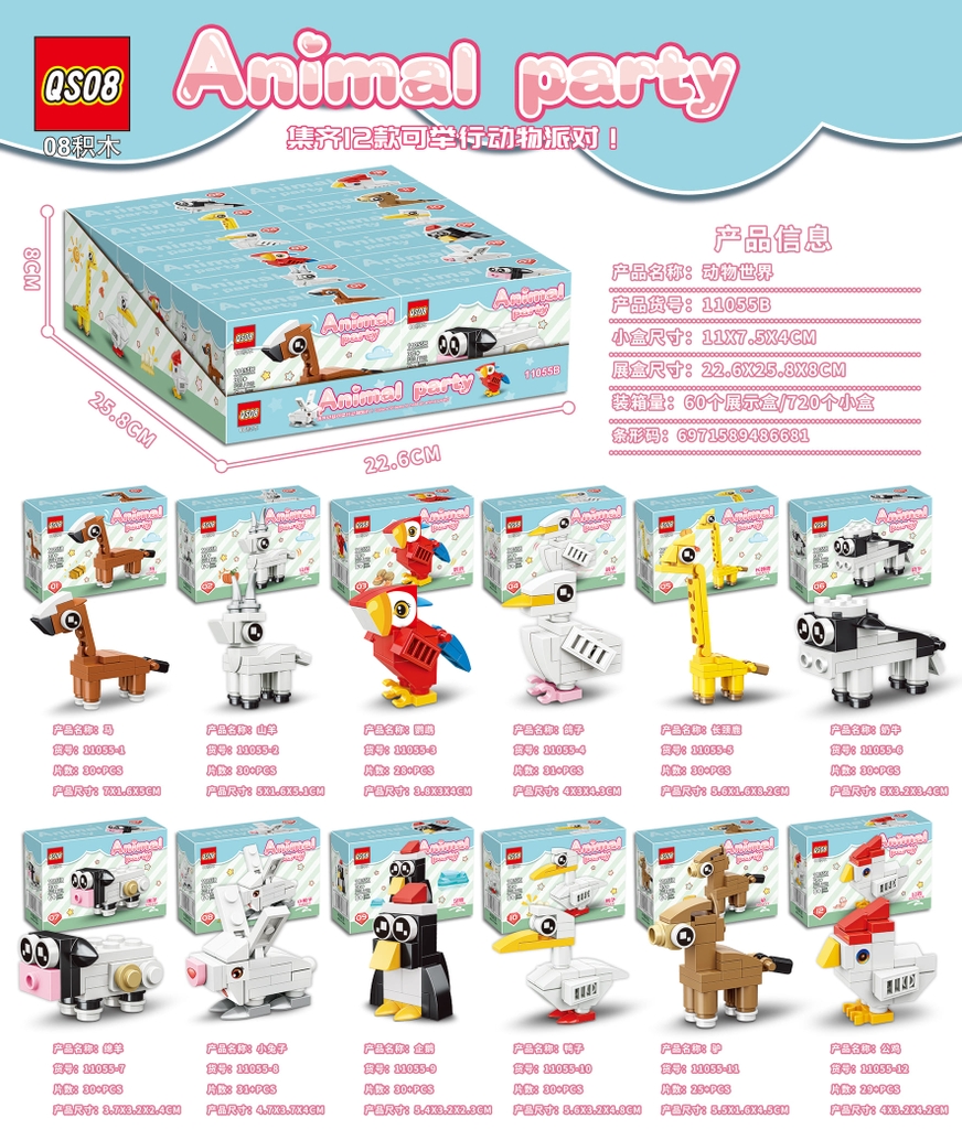 Bộ xếp hình động vật 12 mẫu mã 11055B (Bán theo lốc 12 hộp)