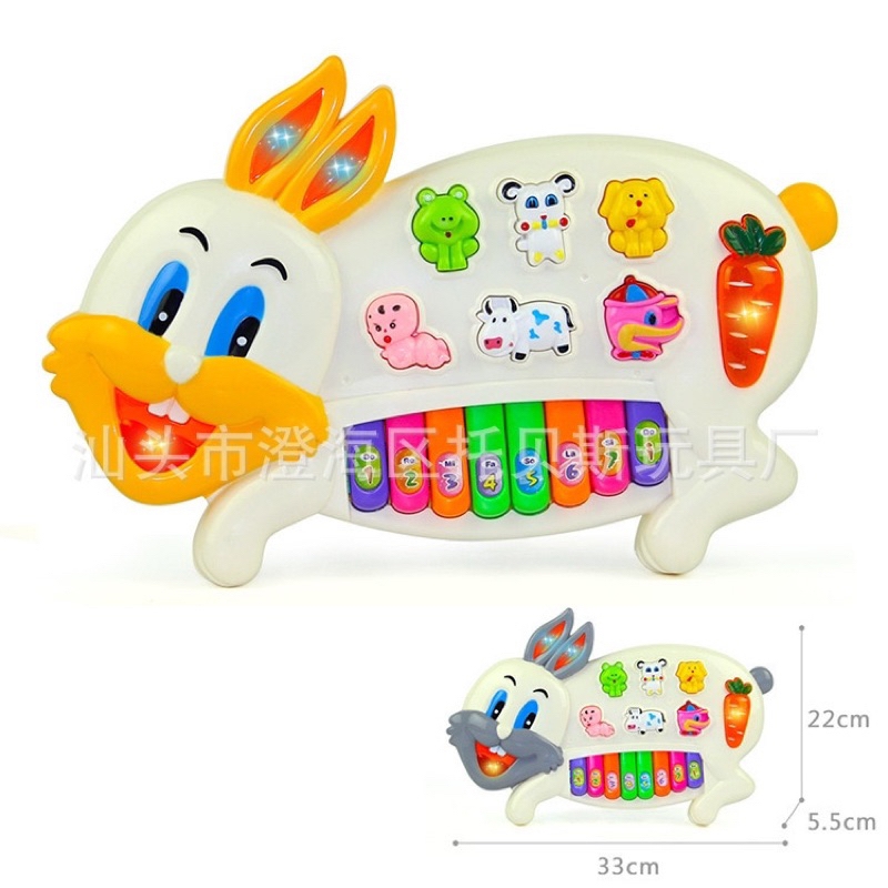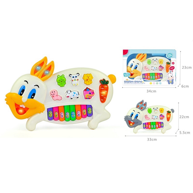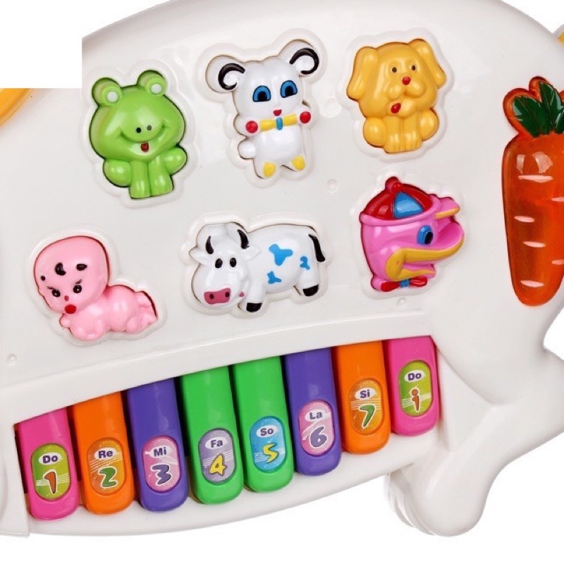 🔹 Đàn piano đồ chơi cho bé hình chú thỏ với các phím đàn nhiều màu sắc và âm thanh sống động sẽ giúp bé học hỏi thêm về âm nhạc.