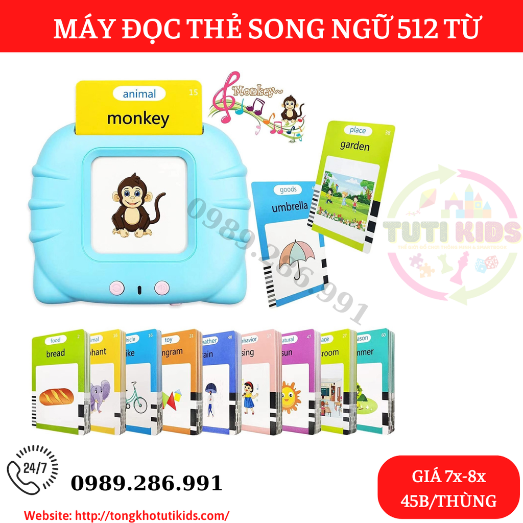 Máy đọc thẻ Flashcard anh-việt 3 chế độ đọc: song ngữ anh-việt, tiếng anh, tiếng việt kèm phát nhạc