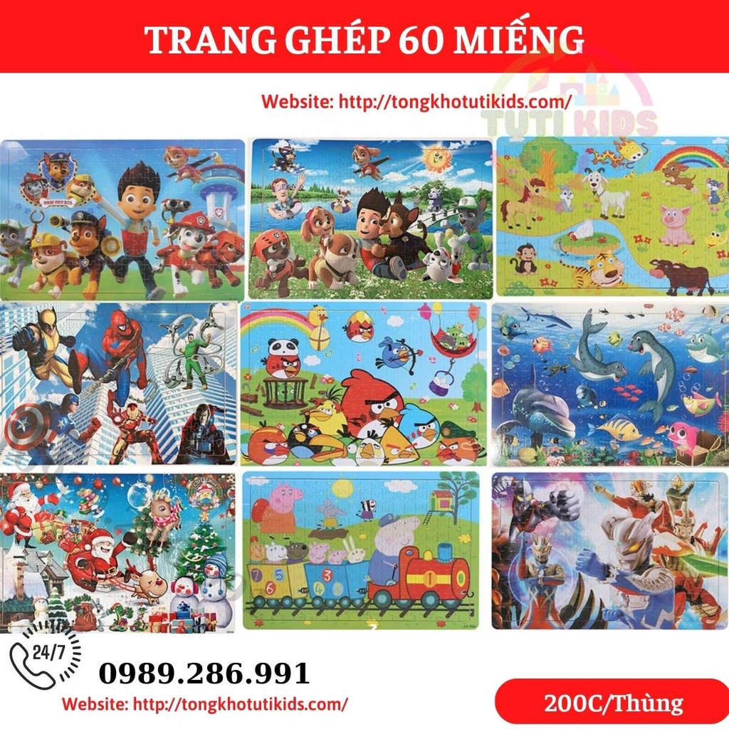 - Tranh ghép hình bằng gỗ 60 mảnh phù hợp cho bé từ 3-10 tuổi